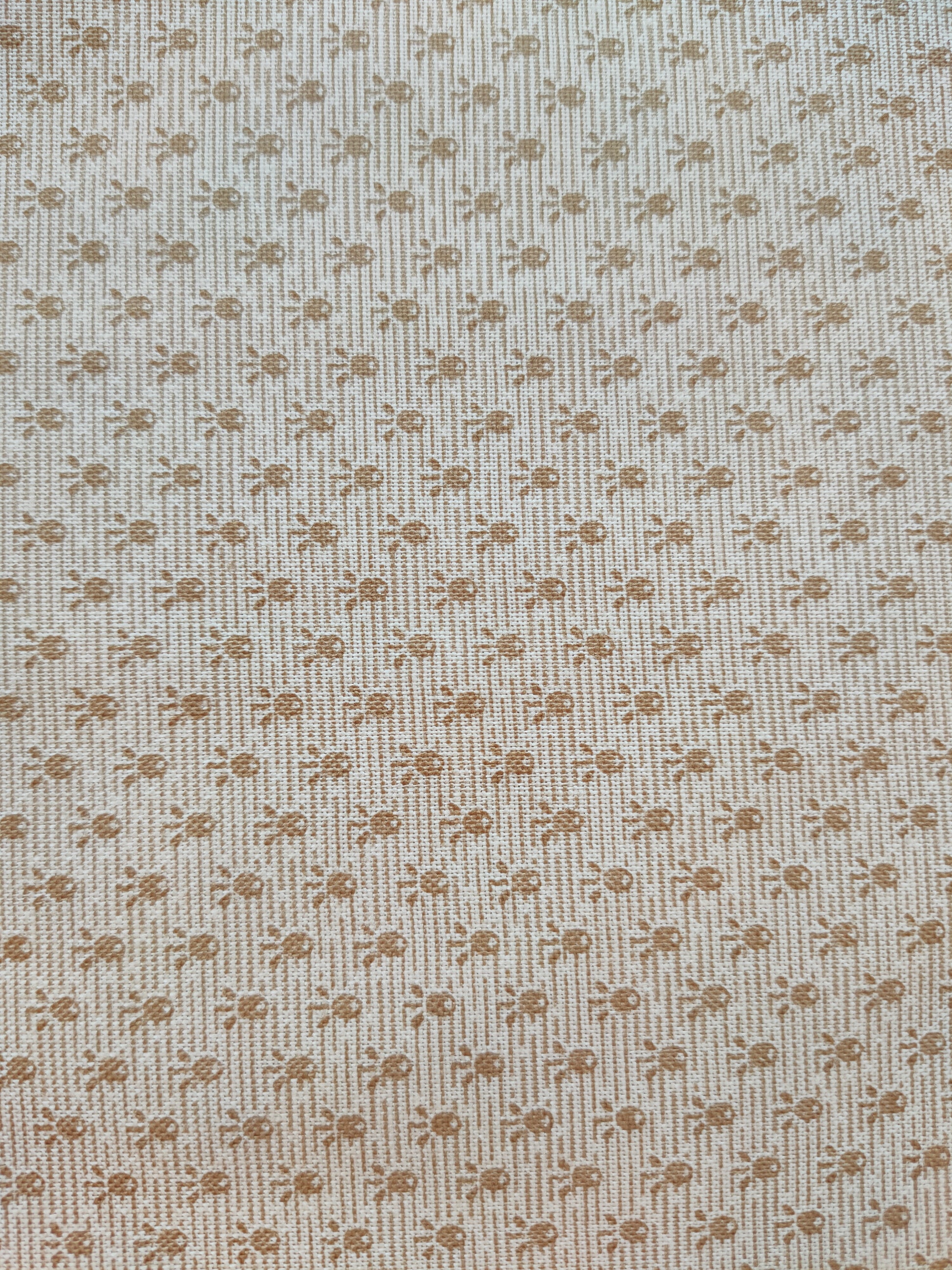 100% cotton. Fat Quarter. Beige flower pattern on a striped beige background.