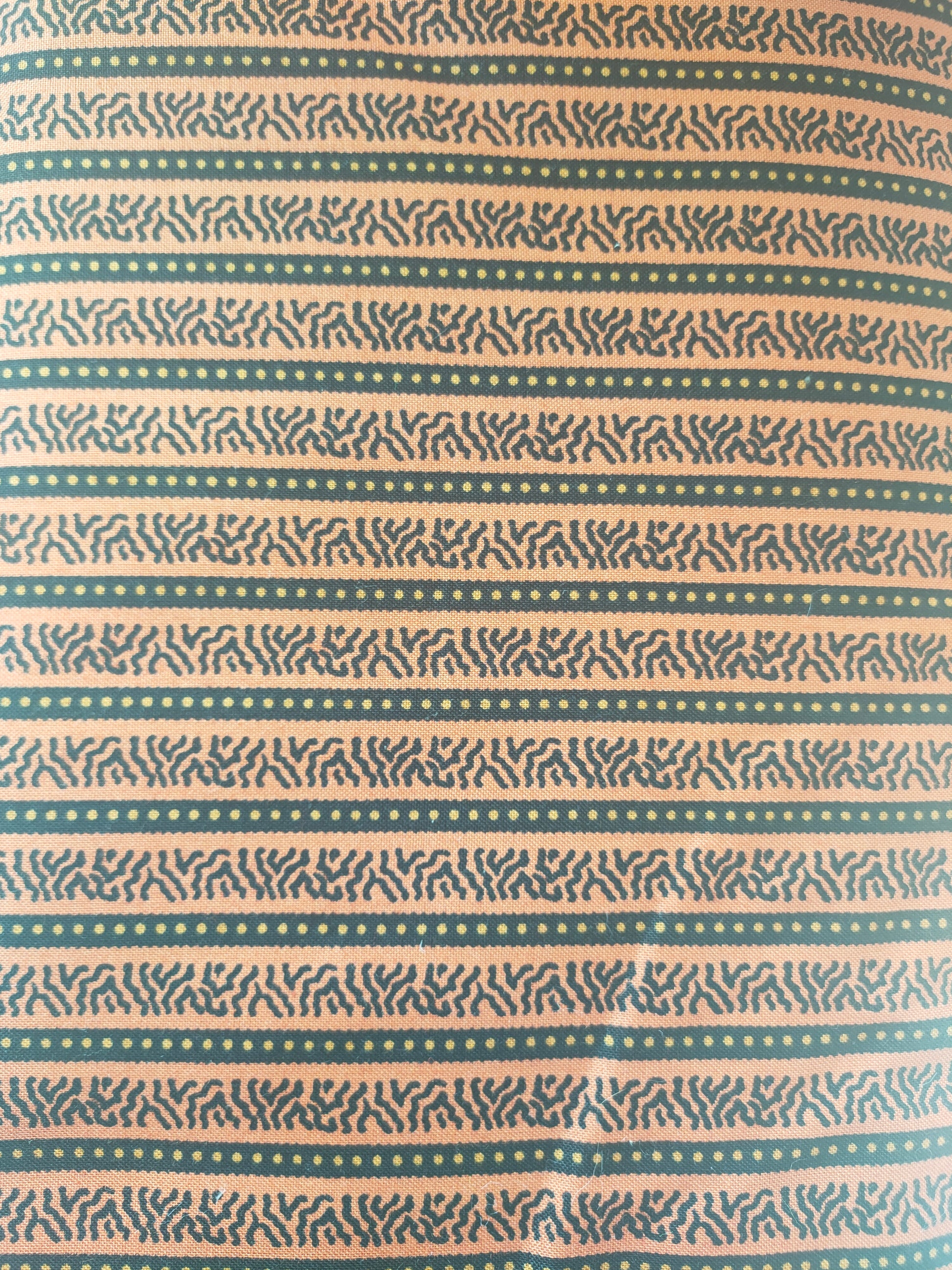 100% cotton. Fat Quarter. Beige and black patterned stripe on a tan background.