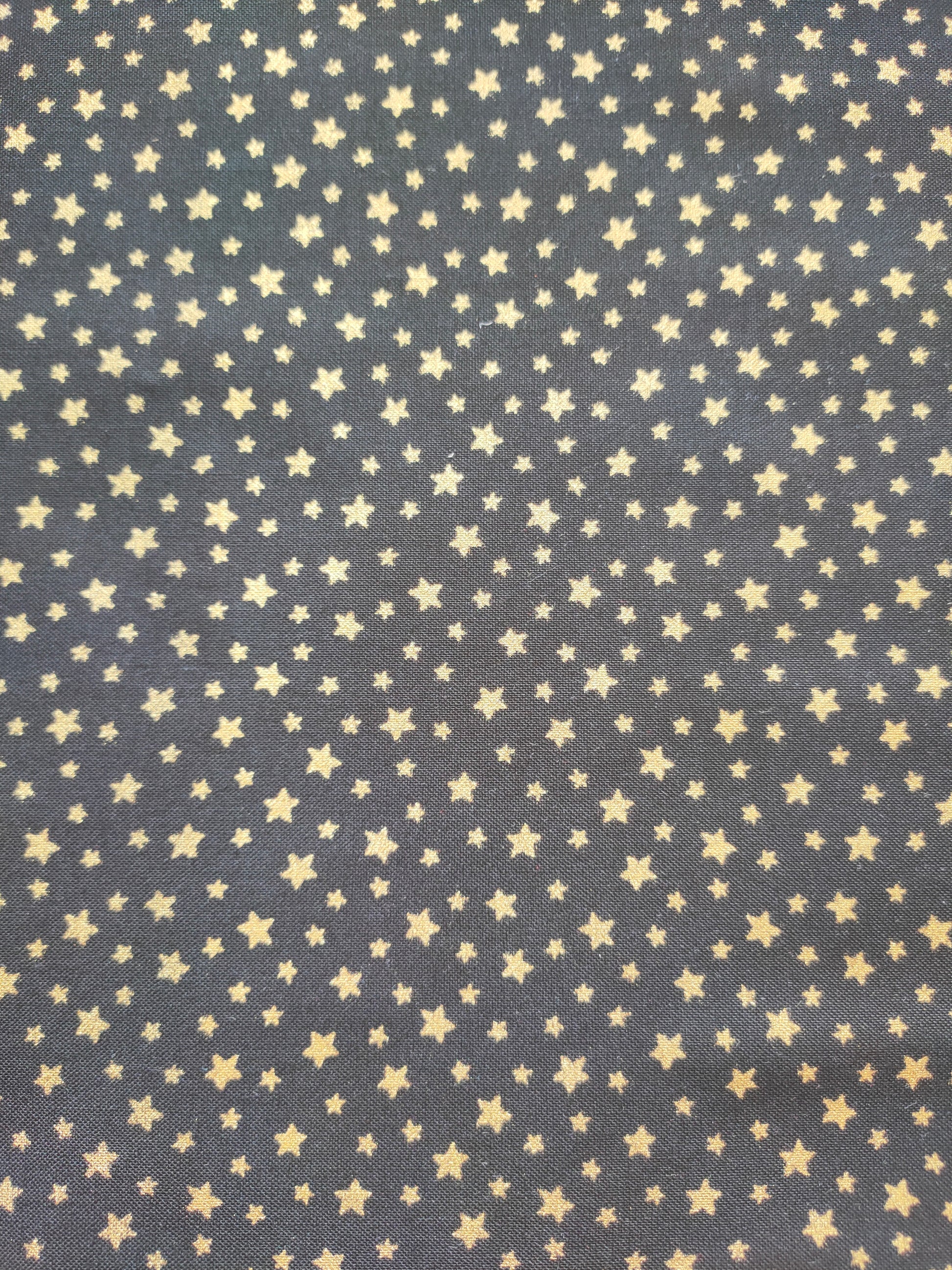 100% cotton. Fat Quarter. Gold stars on a black background.